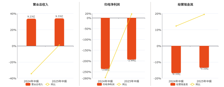 公司营业总收入为9.33亿元。归母净利润为-2.99亿元,在已披露的同业公司中排名第100。经营活动现金净流入为-5.10亿元,在已披露的同业公司中排名第95。